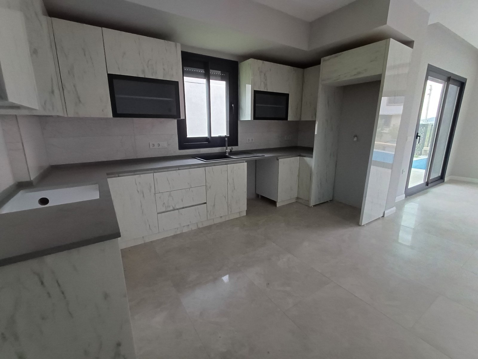 • Giriş katta 45 m2 açık mutfak salon, wc+banyo
